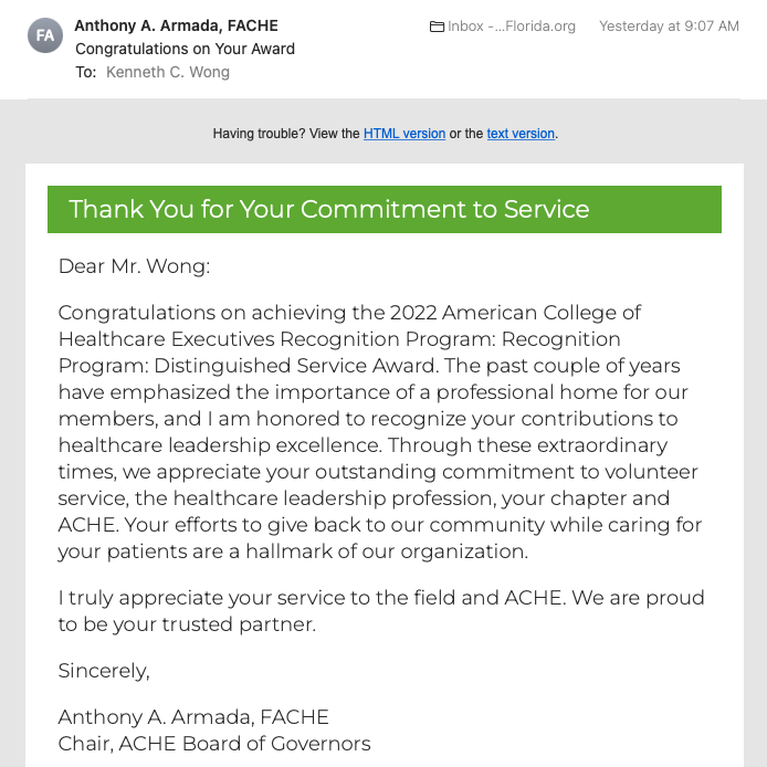 As a long-standing member of ACHE’s national network, I contribute to several national committees, including:
